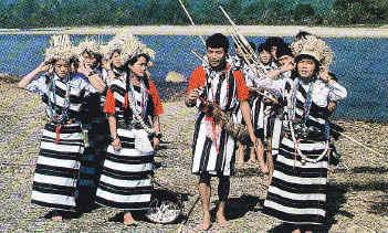 Itanagar boasts of one of the best museums on tribal culture in the country. Home to 26 and more tribes, Arunachal Pradesh is a living repository of their rich customs and traditions. The museum gives a fine bird's eye view of their way of life, their unimaginably rich and variegated dances, their crafts and weapons. Having migrated from Tibet and China, the tribals are mostly mongoloid in origin. Both Hinduism and Buddhism are practised in the State but the majority of the tribal population believes in the worship of Nature and Danyi-Polo (worship of the Sun and Moon). Our hosts, who belong to the Adi tribe, are the soul of hospitality and describe to us the different weaves used by each tribe in its clothing. The women look stylish in their tight ankle-length wraparound skirts and we have never seen such a stunning variety of garments for men.