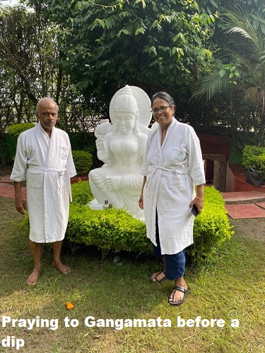 1. providing the residents to use the private walkway along the ganges and the private ghat in Hotel Ganga Kinare. The hotel provides robe and towel and ensures safe bathing by providing a strong chain to hold on during bathing.(Usha, Jayanti and I had the dip in Ganges) and