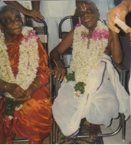 One Saturday afternoon Chithapavathu chithi, (that’s how we used to call Thatha’s brother’s wife) had come. Thatha was lying on the bare floor in the hall, paati on the other side and chithi sat next to her for a chit chat. Amma and chithi were to go to temple in the evening. The conversation turned to marriages of the present day when Thatha recalled marriages of those days. Thatha suddenly remembered that on Wednesday, it was 60 years since they got married. Amma immediately said, jubilantly ‘that calls for a grand celebration’, ‘Celebrationum vendam, manangatiyum vendam. Kottanukku aara vayasachu (celebration? at our age? No way) ’said paati, Amma said ‘That is why the need for celebration. Not every one will be lucky to see their 60th Wedding Anniversary. We children have to be blessed by both of you’ and immediately started working towards it. She discussed with chithi and me regarding what to do, the kind of food to be made or ordered. Menu was of course the first item to be discussed and decided. She rushed to ‘Ellappan kadai’ (our family clothier’s shop) to buy blouse pieces to be given to the ladies on that day. Paati in her typical way remarked’’ Koothil kundotharan madhri kudhikkiraa, kudu kudunu poi Ravikaye vangindu vanthuta (She is hasty and bought blouse pieces). What if you are not able to celebrate it?’ “I’ll celebrate it” said amma to paati determinedly. (Actually thatha and paati both had stopped celebrating any festival after my father’s demise). They rang up Vijaya mami and Amirtha mami who were not in Chennai and talked to Sampath mama who came in the evening with Choodamani mami, Shyam and Suji. As usual Kalyani Mami and Raghu Mama without demur eagerly participated and put in lot of hard work.