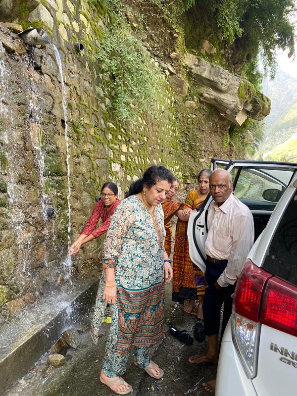 The first stop for breakfast made us realize that our Driver Viren bhai was a good driver but not a smart one. He couldn’t process our instructions of strict veg, no onion no garlic food etc. He stopped democratically at a place where everyone ate everything, including things that crawl and creep😊 We learnt our first lesson on our driver’s abilities in general matters of food and stopped at another vegetarian restaurant. The next event in the journey was the stop at Rishikesh for vehicle inspection and yatri passes. I am aware that it takes around an hour to get all the papers at Rishikesh. However, none of us was prepared for the couple of hours when our driver disappeared with the vehicle for inspection, leaving us sitting out in the hot sun. Then came just the vehicle but Viresh Bhai was still running around trying to get clearances. It was Hema’s lament that we might end up spending the whole day in the vehicle that motivated both Jayanti and Chitappa to jump into action. I was still relaxing and didn’t think anything was amiss though three hours had passed at the RTO in Rishikesh. After some time, I too jumped into action and we were quite upset and shocked to know that our driver was clueless on the permit process. Somehow, we went from desk to desk and managed to get all the papers. My mercury was soaring, much more than the high temperature at Rishikesh, but Chitti , true to her noble nature, wouldn’t let me vent out my frustration with Viresh Bhai.
