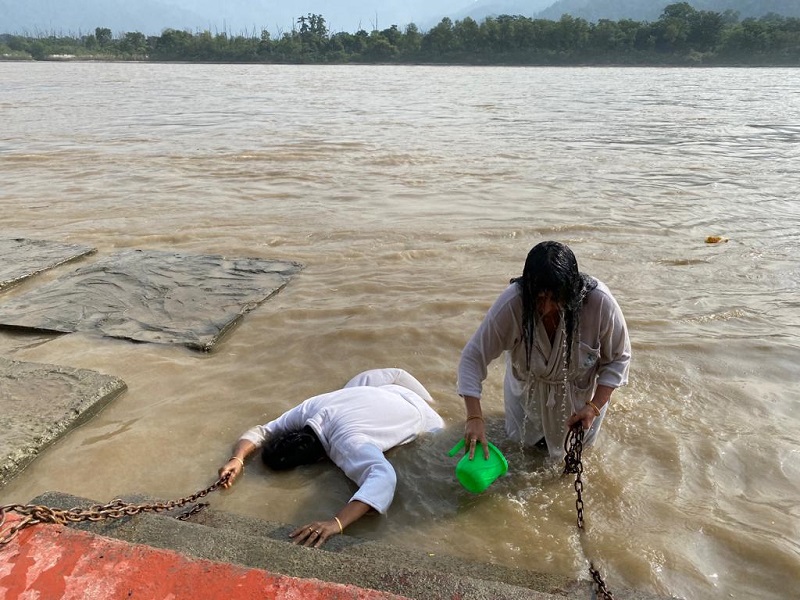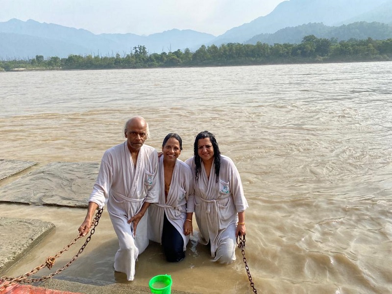 The lingering after effects had taken their toll on Chitti and Hema, who continued to feel tired on the next day morning. But Chitappa, Jayanthi and myself decided that a dip in the holy Ganges would be the grand panacea for all illness. We had access to private bathing ghats in our group hotel. It was Jayanthi’s wedding anniversary too and we felt happy to be at Rishikesh on her special day, though we wished her better half too had joined us. The mighty Ganges invoked awe and admiration. We took three dips but I was filled with trepidation about Chitappa and Jayanthi trying to go into deeper waters. Both are ‘enthu cutlets’ and I had to rein them in to restrict themselves to just the perfunctory dip, nothing more than that😊