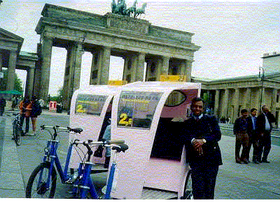 3. Krishnamurthy beside a cycle rickshaw in Brandenberg Gate