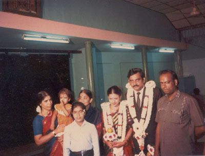 This is a photo of Chooda, Amritha, Harish, Aarthi and I with Chitra and Sudarshan at their wedding (reproduced from the 25th Issue) |