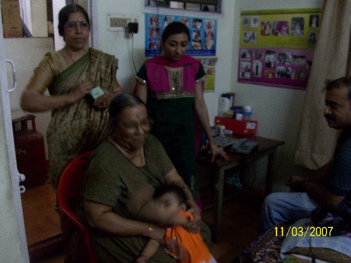 *** Vanaja (my sister) is unwell and could not attend her grandson's (Arun).wedding. Naturally she could not attend Shubha's Ayush Homam. So we had taken Shubha to her house to get her blessings. Here are 3 photos taken in her house.