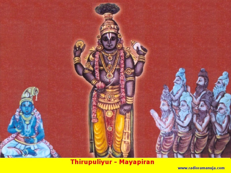 As per sthalapurana, the Saptarishis refused to receive dhan (alms) from King Vrishadharbi, son of Sibi Chakravarthy as they thought it was a sin to receive alms from the kings. The king tried to lure them in many ways and subsequently arranged to kill them. The Lord saved the rishis by killing kritiyai through Indra. The Saptarishis proclaimed that Sriman Narayana is the Paradevata and the Lord took the name Mayapiran at this place. |