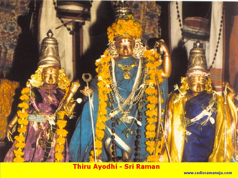 Ayodha is first among the seven Mukhti Kshetras. As per sthalapurana, Sriman narayana took out Ayodhya , an important of Srivaikunta and presented it to Swayambhu Manu, the eldest son of Brahma. Manu Chakravarthi brought this to Booloka and placed it on the southern bank of the river Sarayu. The original Ayodhya temple on which the Azhwars composed Divya Prabanda are not there today due to foreign invaders. There is an ammaji temple on the banks of the Sarayu river and a temple of Sri Ranganatha with a Sannidhi for Rama. |
